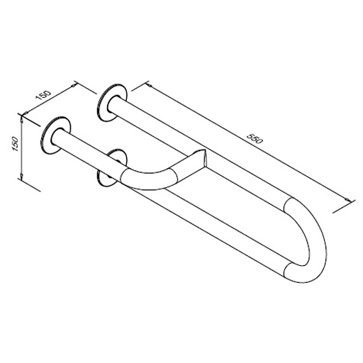 Fester Handlauf für Menschen mit Behinderung, 3-fach gestützt, links, 550 mm, glänzender Edelstahl